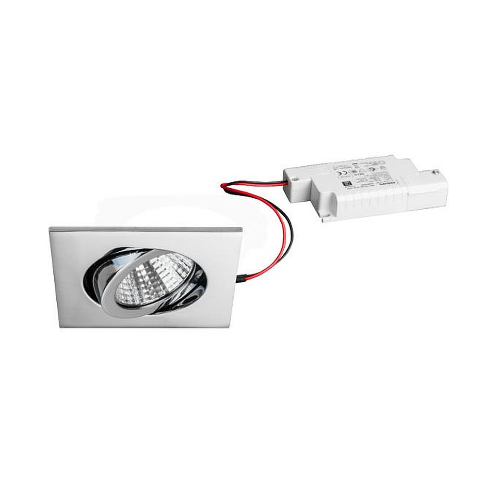 Recessed LED spot set incl. converter, IP20, square, 230V, 7W 3000K 740lm 38°, swivelling 30°, dimmable, chrome