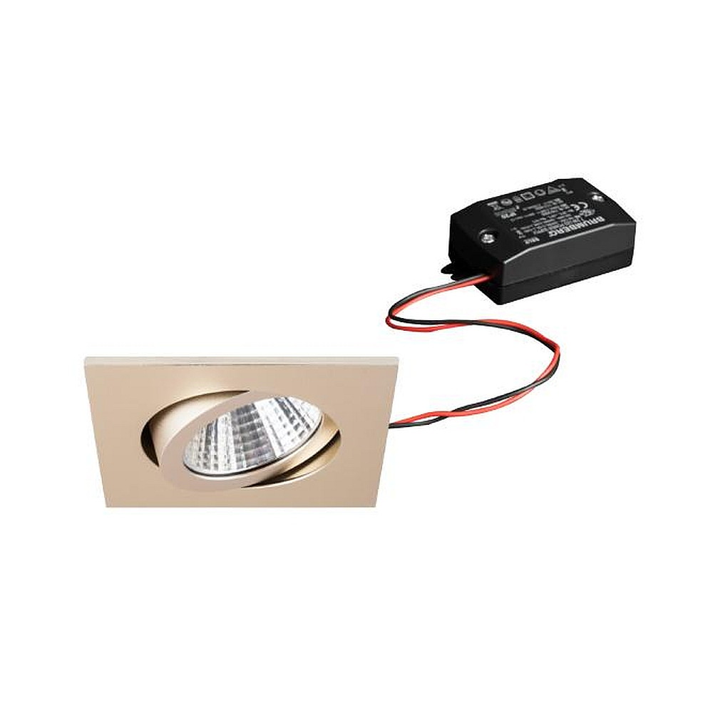 Recessed LED spot set incl. converter, IP20, square, 230V, 7W 3000K 740lm 38°, swivelling 30°, matt champaign