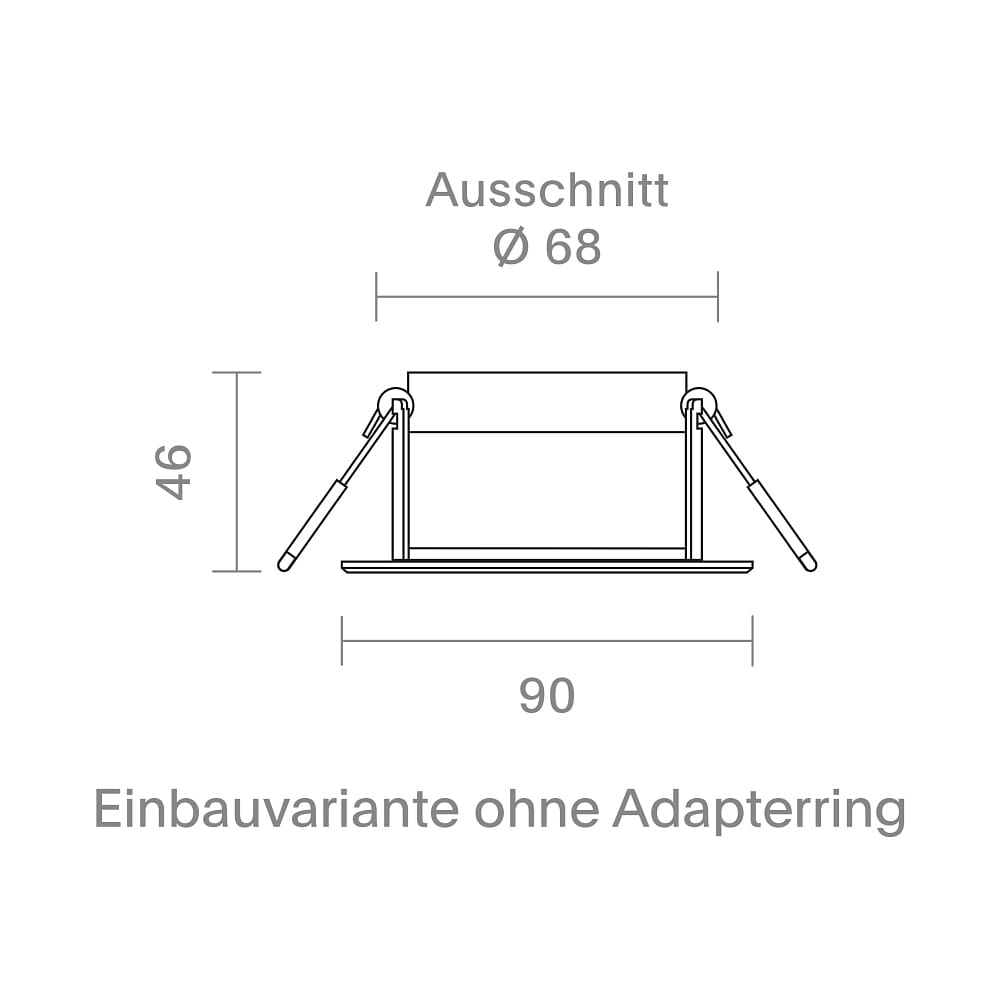 The IP54 protection rating guarantees reliable protection against dust and splashing water, increasing the durability of the light. The recessed light is designed for a ceiling cutout of 68 to 83 mm and comes with an adapter ring that facilitates installation. Additionally, the light can be installed up to the insulation in thermal insulation, providing flexible installation options.
