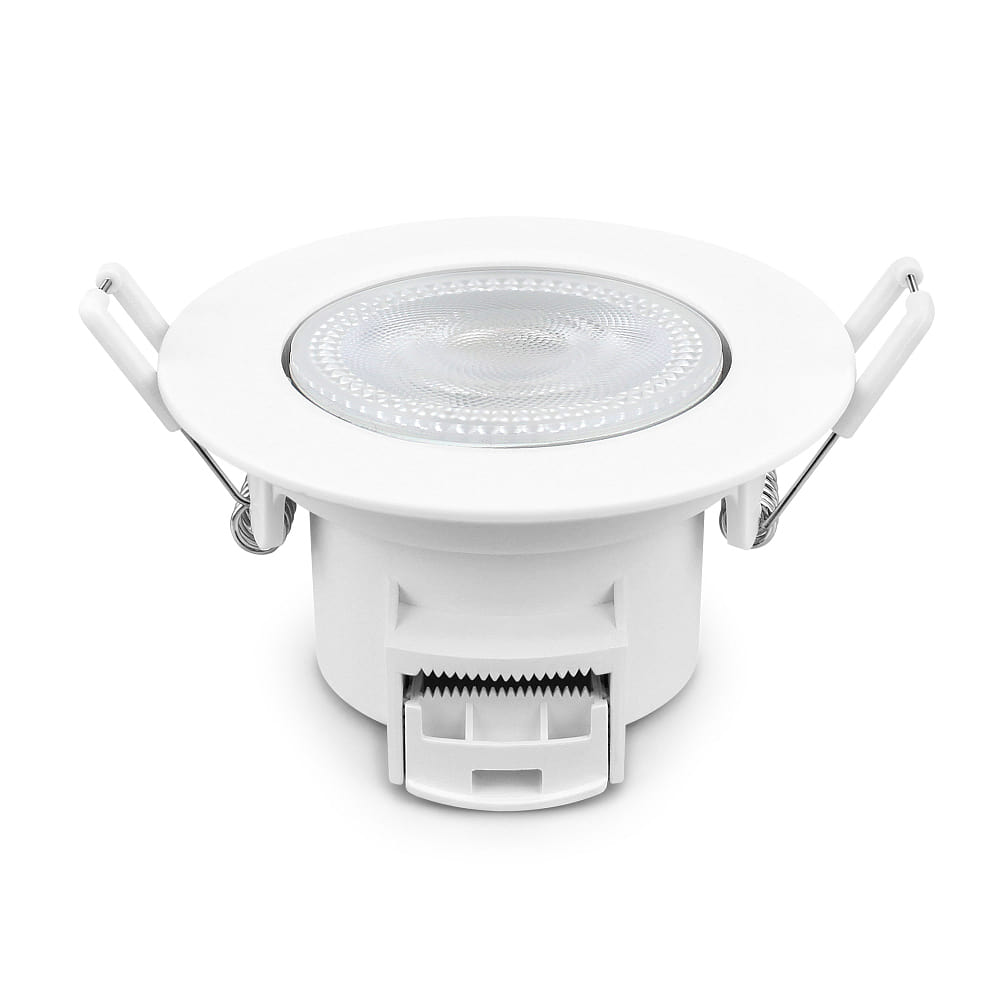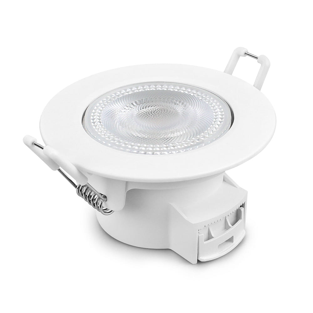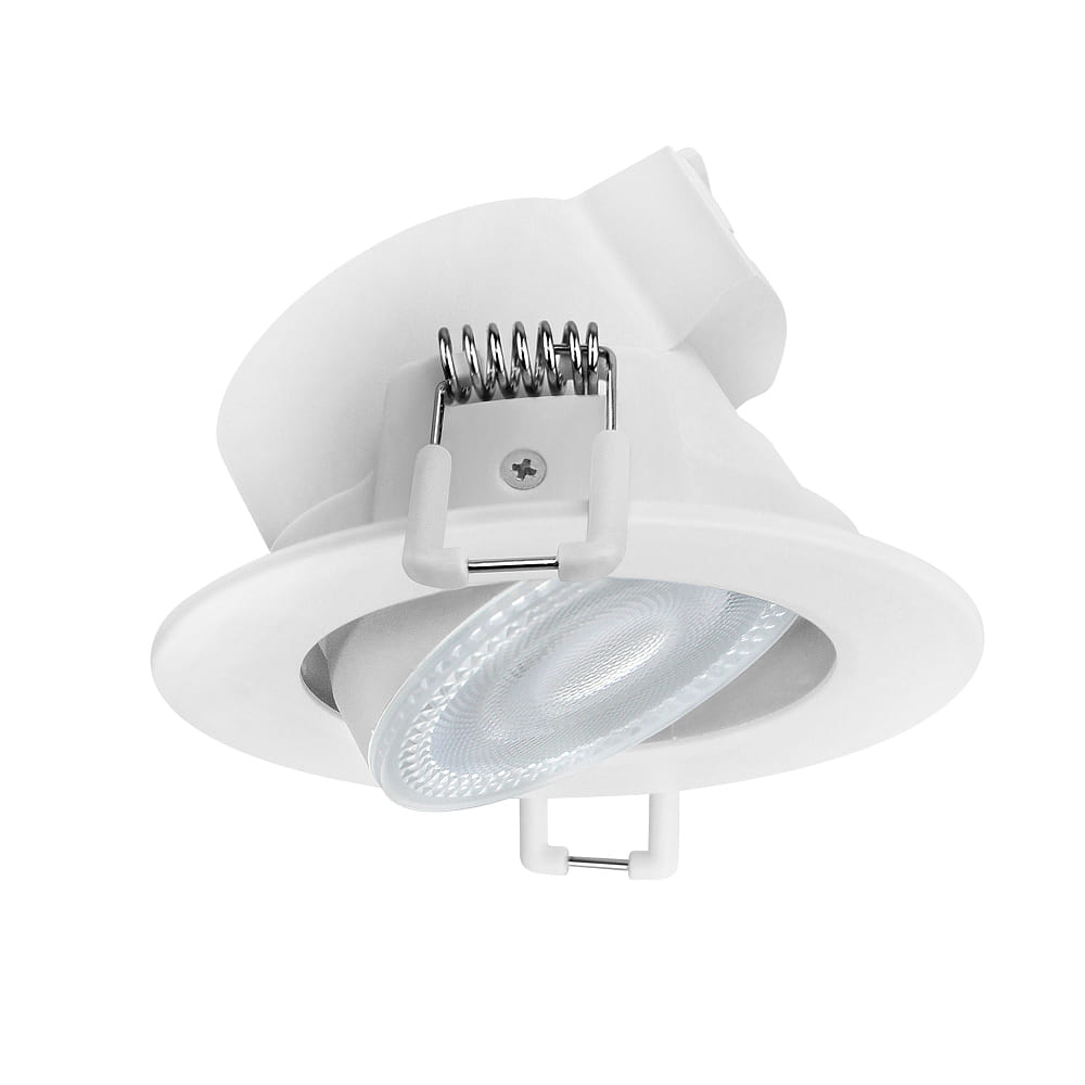 The LED recessed spotlight features dimmable light with a color temperature of 3000/4000/6500K and a color rendering index of >80Ra. The light color can be easily selected using a slide switch on the back of the spotlight, allowing for a choice between warm white, neutral white, and daylight white / cool white.