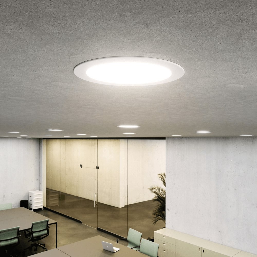 The white design blends discreetly into any room and creates a harmonious lighting environment. The recessed light has an IP20 protection rating and can be easily operated thanks to the built-in LED. The average lamp lifespan is 25000 hours, and the start time is less than 0.5 seconds.