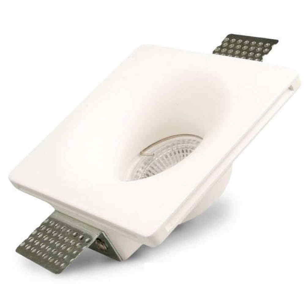 The gypsum recessed spotlight GU5.3 is square and funnel-shaped, giving it a modern and stylish look. The product is designed in an elegant white color that seamlessly blends into any interior.