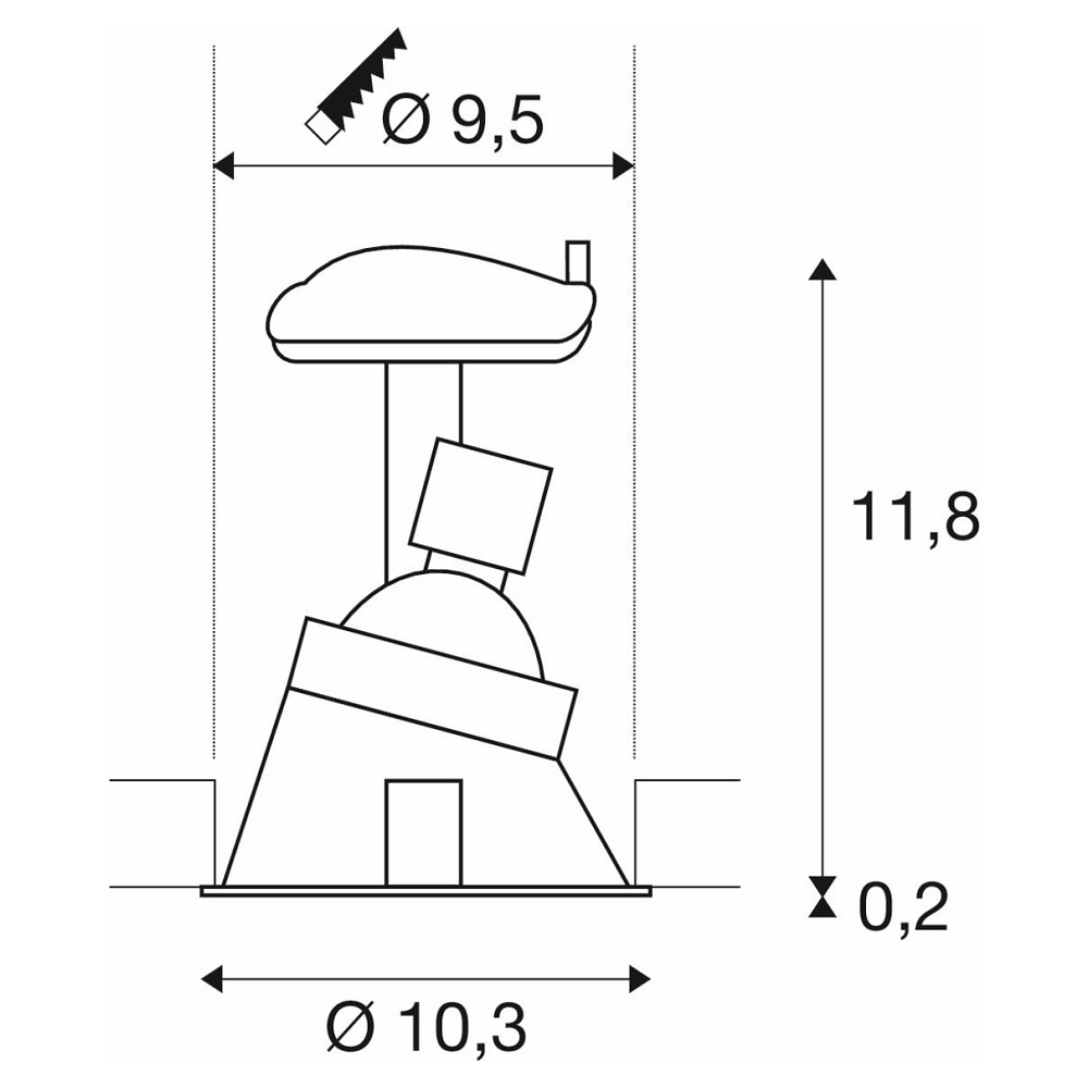 The recessed light HORN-A GU10 from SLV is a high-quality ceiling light designed specifically for indoor use. With an operating voltage of 230V and a size of Ø 10.6 x 18 cm, it is ideal for various applications in your home.