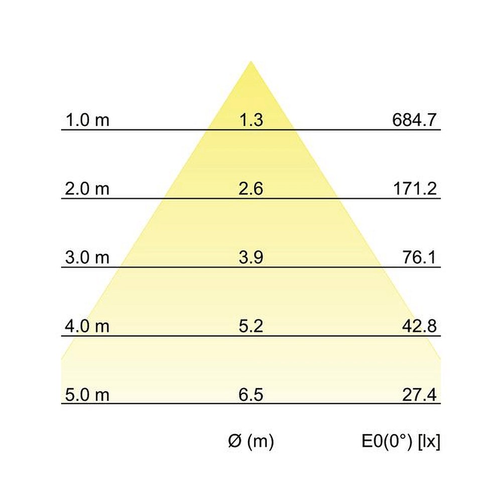 The downlight has a recessed depth of 7.5cm and a cutout with a circle diameter of 12cm. Thanks to the included LED light source with a luminous flux of 801lm, the room is optimally and directly illuminated. The high-quality construction of aluminum and plastic guarantees a long lifespan.