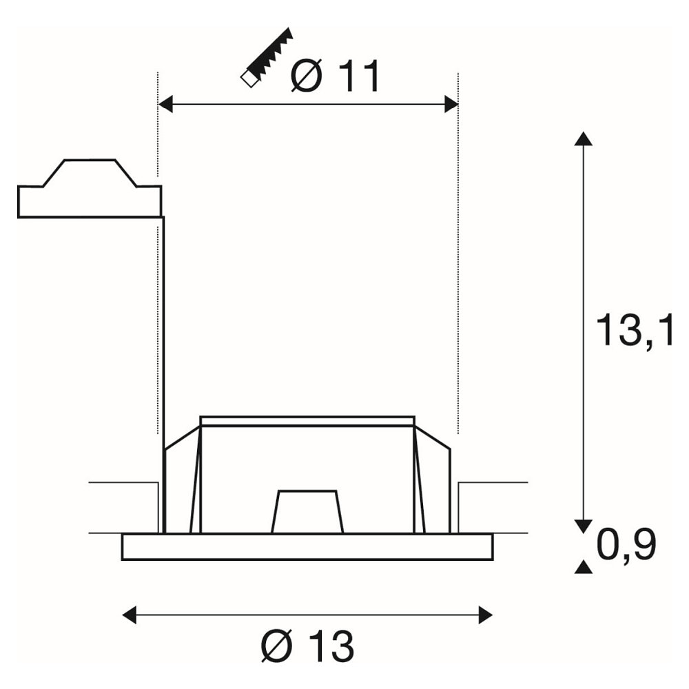 The recessed light operates at a voltage of 230V and weighs only 0.5 kg. With a installation depth of 13.5 cm and a installation opening of 11 cm, it is easy to install. The light is suitable for indoor use only and perfect for ceiling mounting. The base of the light source is GU10 and the power consumption is maximum 35W.
