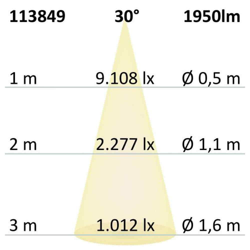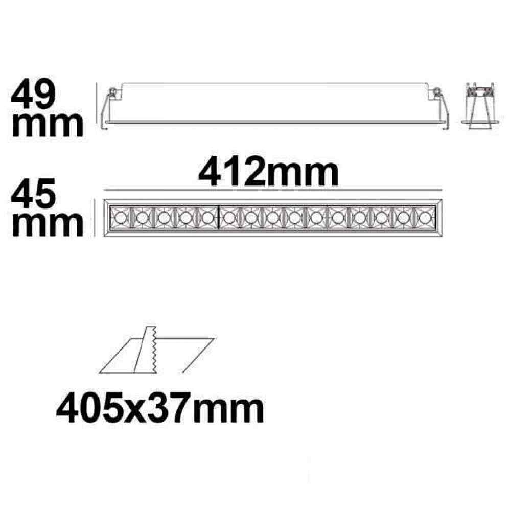 The recessed light has a size of 41.5 x 4.5 x 4.9 cm and weighs 0.785kg. The beam angle is 30° and the installation depth is 4.6cm. The IP protection class is IP20, which means that the luminaire is protected against dust and touch. In addition, the average lamp lifespan is 30000 hours.