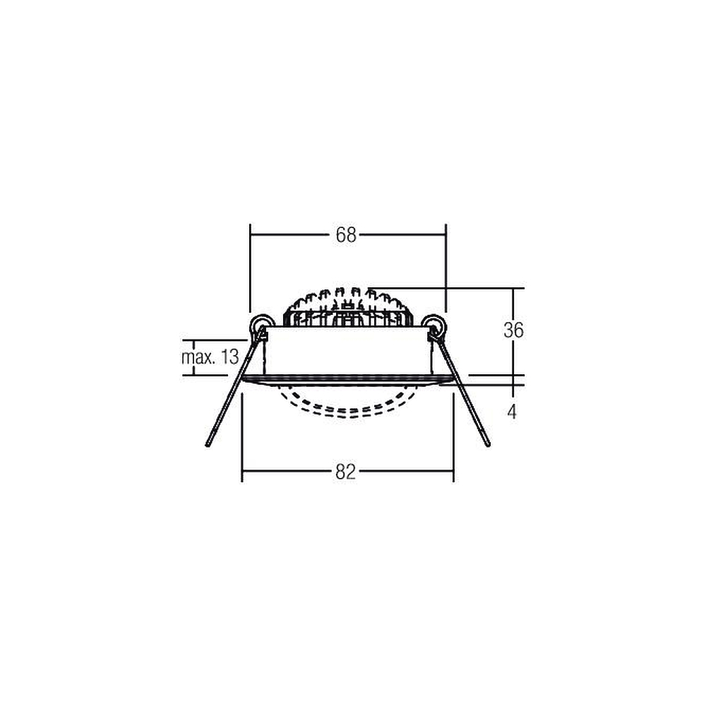 The recessed spotlight has a beam angle of 38° and is adjustable to direct the light precisely. With a size of Ø 8.2 cm and a installation depth of 3.6 cm, it can be easily installed in ceilings or walls. The installation process is simple and straightforward.