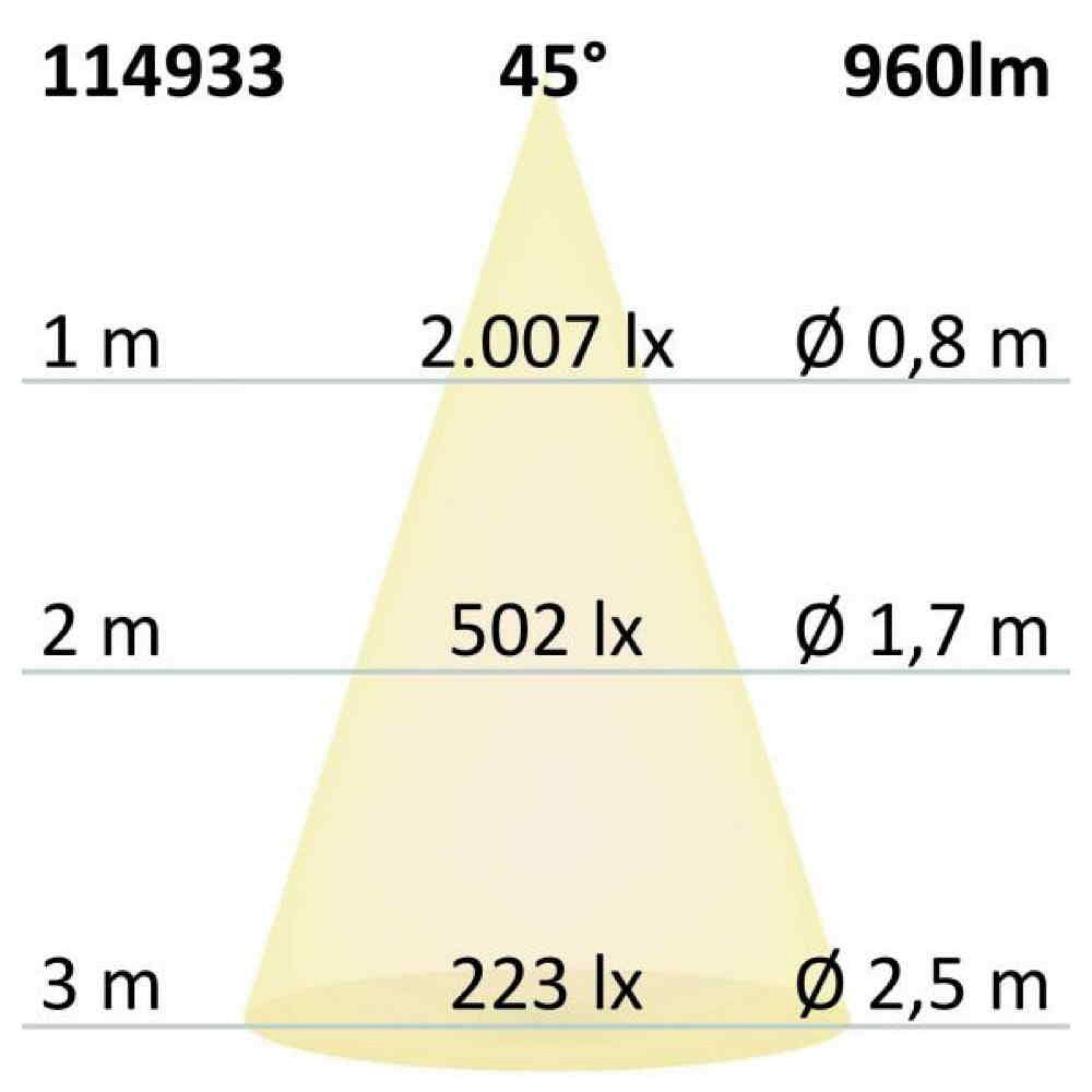 Thanks to the swiveling beam angle of 45°, the light distribution can be individually adjusted. The recessed light is perfect for use in living spaces, offices, or shops, providing pleasant illumination everywhere.