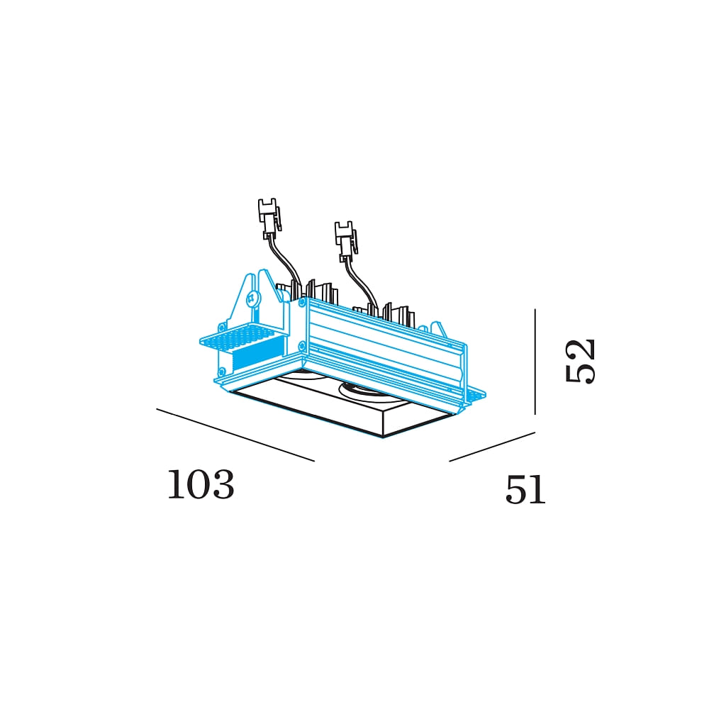 The installation depth of the fixture is only 6.5 cm, allowing easy integration into ceilings of varying thickness. The rectangular cut-out measures 11.7 x 6.4 cm, suitable for wall thicknesses from 0.7 to 3.2 cm. The fixture features protection class 3 and an IP20 rating, protecting it against solid foreign objects. An aluminum cleaning set is included to ensure a clean and professional appearance. Operation is at 16 volts, though a suitable driver is available separately.