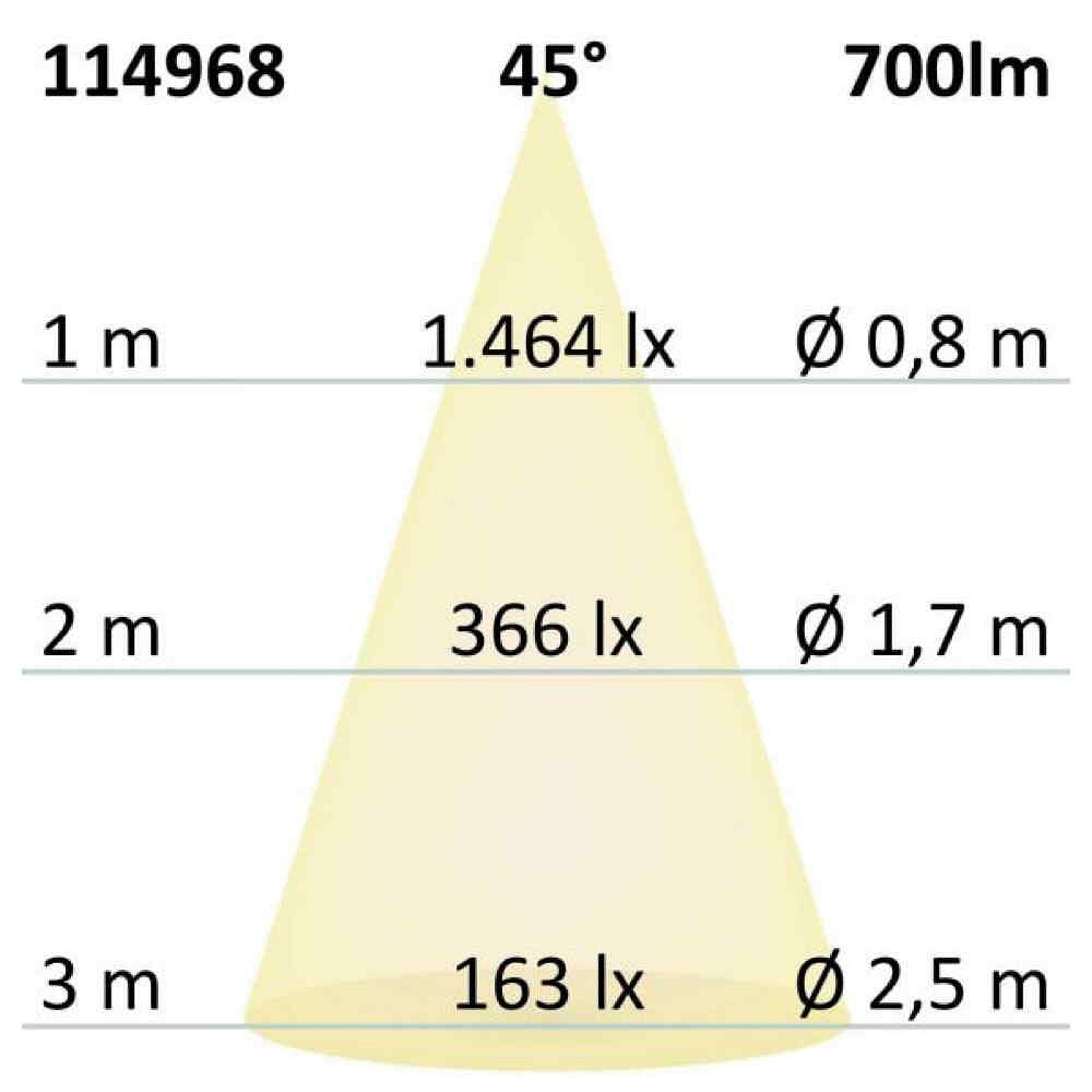 The light has a color rendering index of 93Ra and a luminous intensity of 1464cd. With a luminous flux of 700lm and an average lamp life of 35000 hours, it offers an efficient lighting solution. The IP protection class IP40 makes it suitable for indoor use.