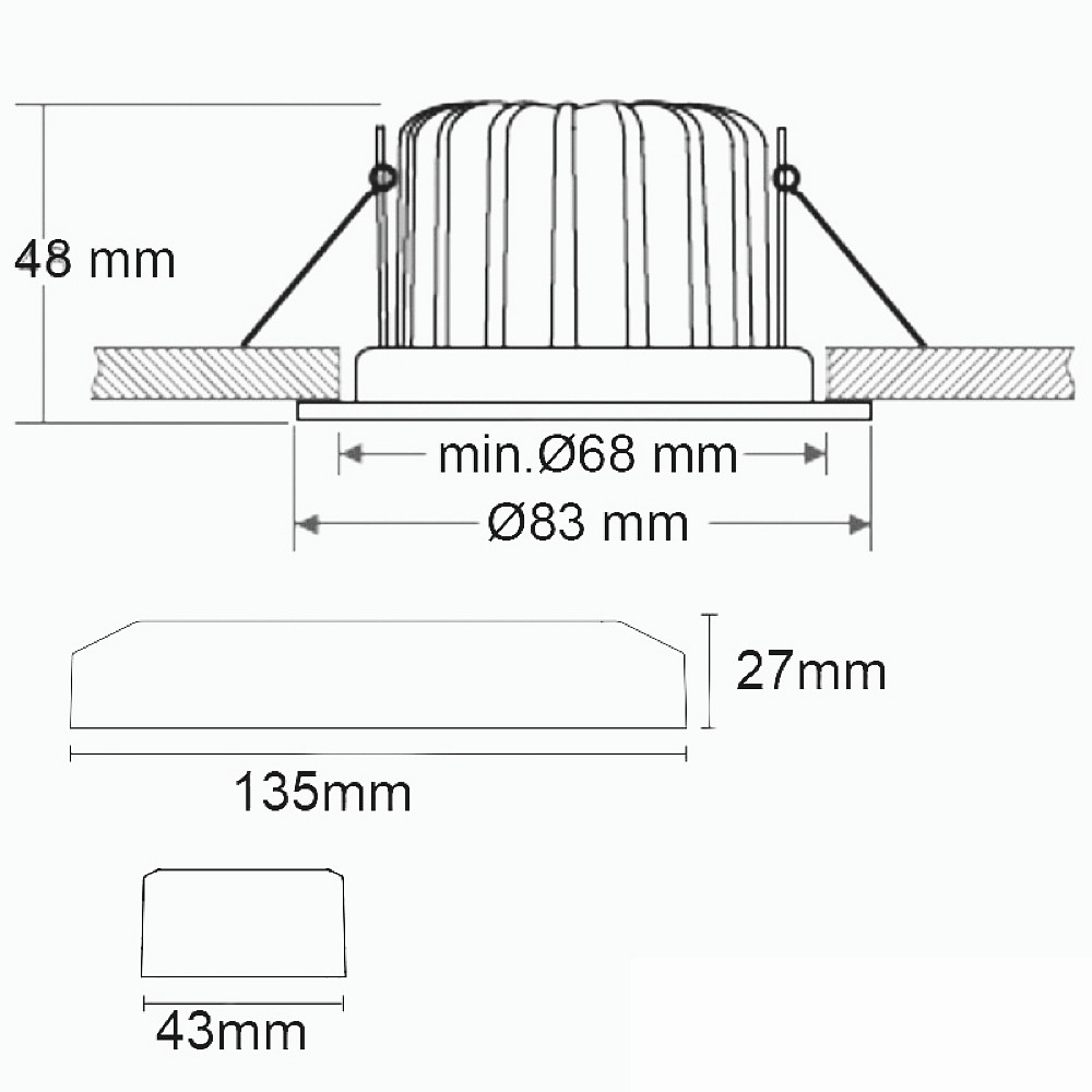 Recessed outdoor LED spot Sys-68, IP65, fixed optics, CRi >95, push-/ DALI-dimmable, 10W 3000K 800lm 60°