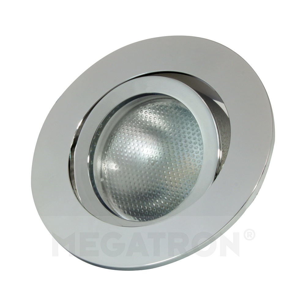 The recessed ring DECOCLIC from MEGATRON is a round ceiling recessed light suitable for dry indoor areas. It has an IP20 protection rating and can be installed in standard boreholes with a diameter of 6.8cm. The recessed ring is swiveling and can be operated with interchangeable light sources, either with high-voltage or low-voltage operation.