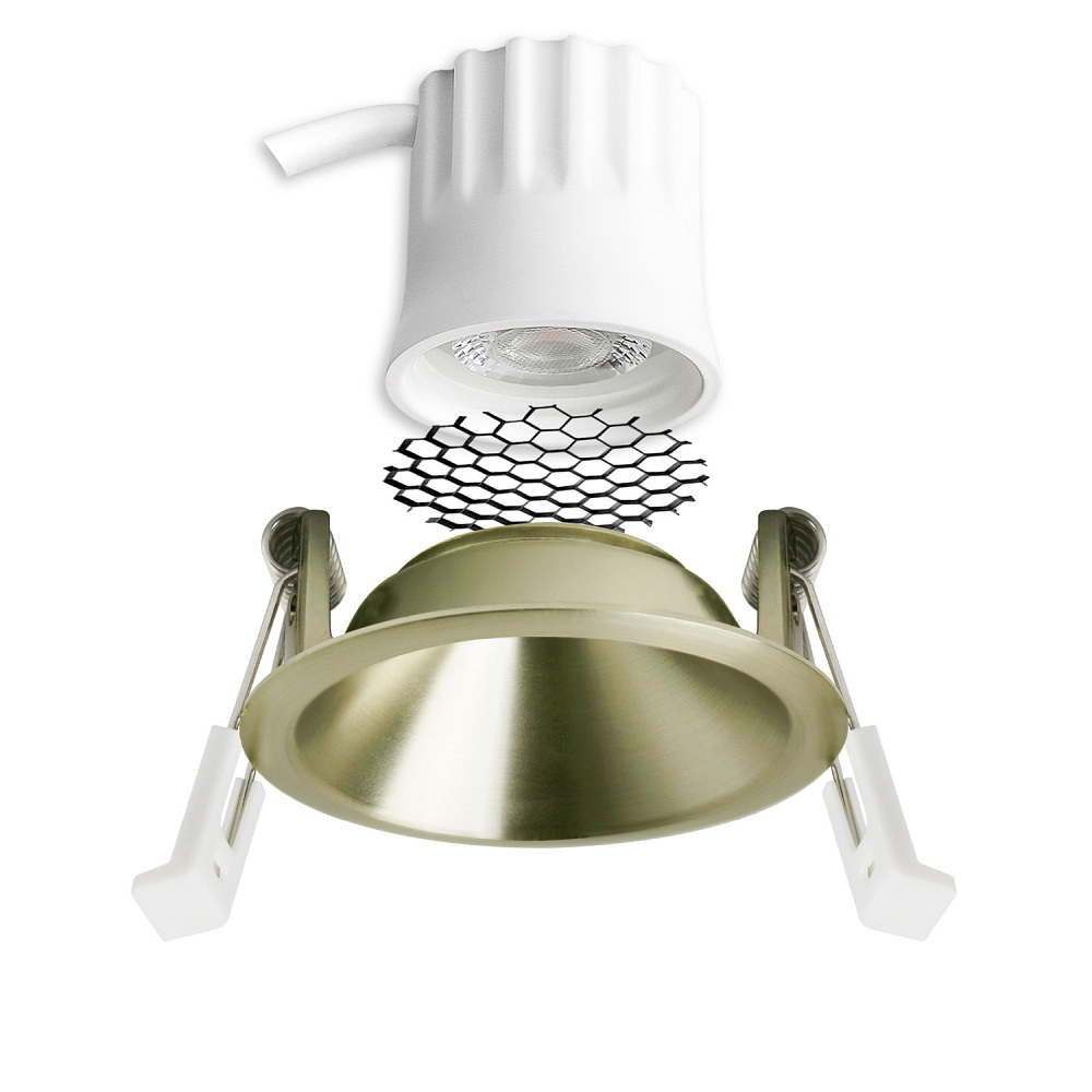 recessed spotlight BACK45 round, set back IP20, brass dimmable