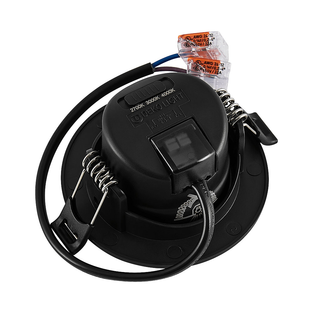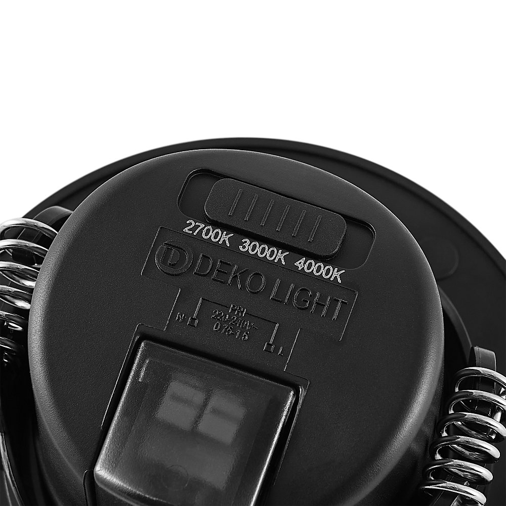 The recessed spotlight offers three selectable color temperatures: warm white (2700K), neutral white (3000K), and daylight white (4000K). This allows the lighting atmosphere to be flexibly adjusted to different needs. A high color rendering index of 90 Ra ensures that colors appear natural and vivid. This guarantees pleasant and atmospheric lighting that is both functional and decorative.