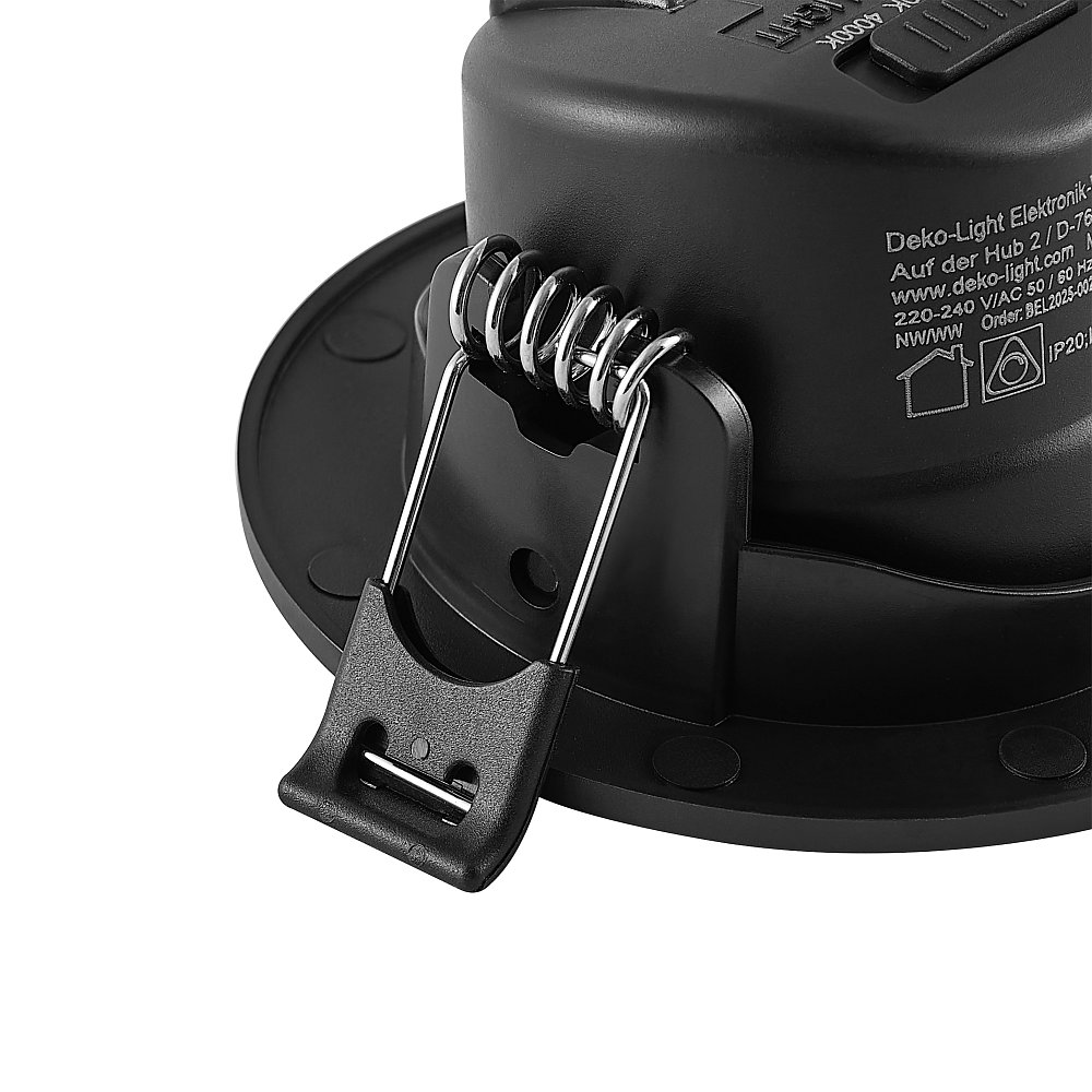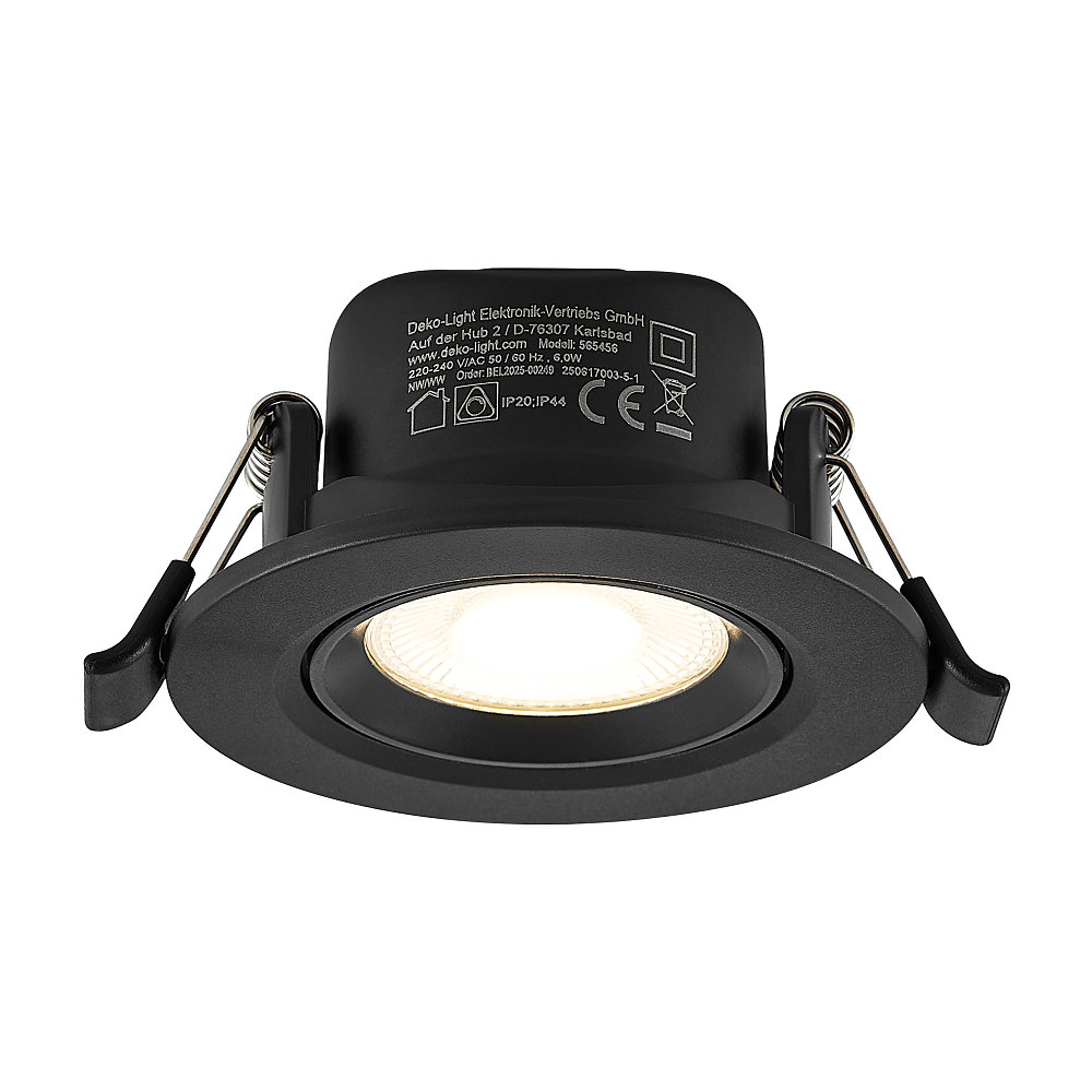The LED recessed spotlight SURTUR TILT 68 from Deko-Light impresses with its modern technology and elegant design. With a power consumption of only 6 watts, it provides bright and efficient lighting, delivering up to 520 lumens of luminous flux. Thanks to its tiltable design, the light can be directed individually, allowing for targeted accentuation. The installation depth of only 4.2 cm enables easy and discreet integration into various types of ceilings.