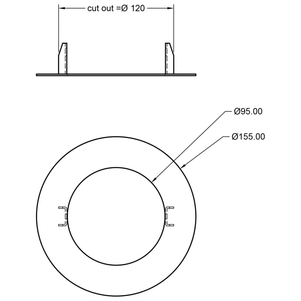reducing ring 155/95MM round, mechanical, built-in version, traffic white