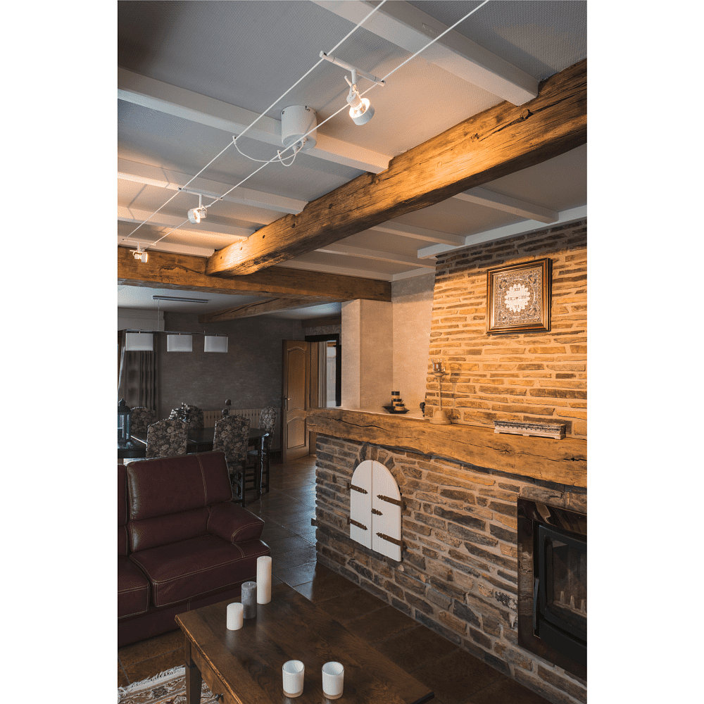 Bei Verwendung von Halogen-Leuchtmitteln wird die Montage der Leuchte am TENSEO Seilsystem in mindestens 250cm Höhe ab Boden empfohlen.