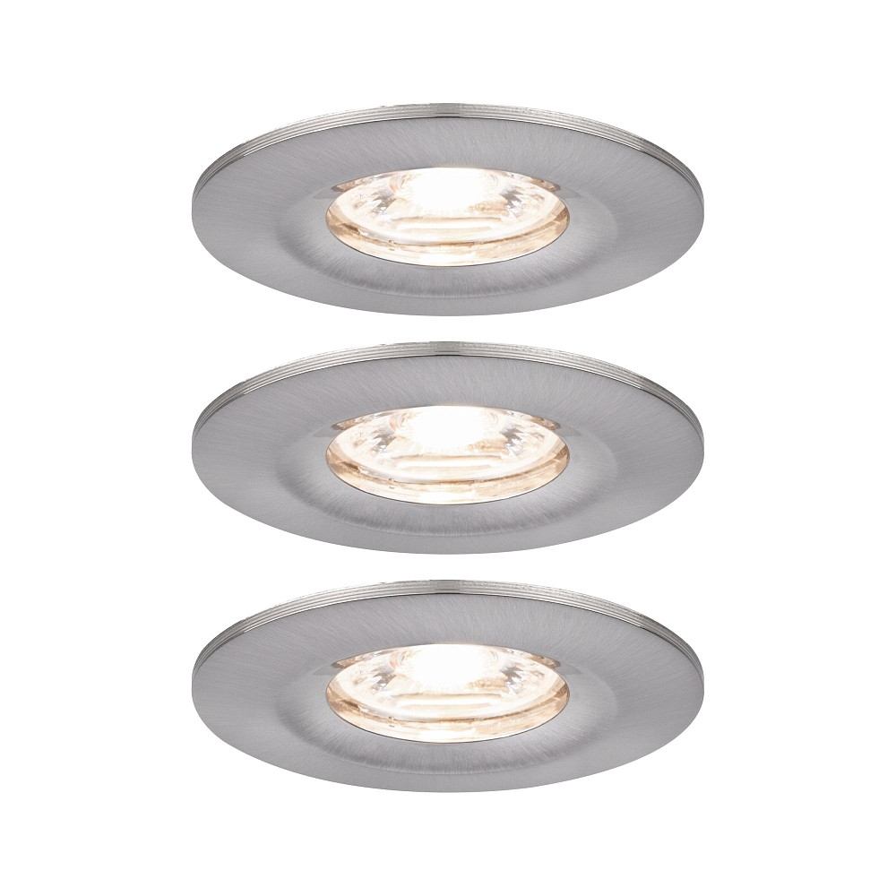Set of 3 LED Recessed luminaire NOVA MINI with Module COIN, IP44, fixed, iron brushed