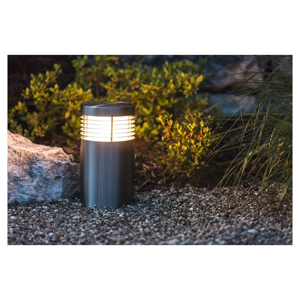 Sockelleuchte CALLIMA, IP44, 30cm, E27 max. 16W, V2A Edelstahl / matt, für Gravur geeignet