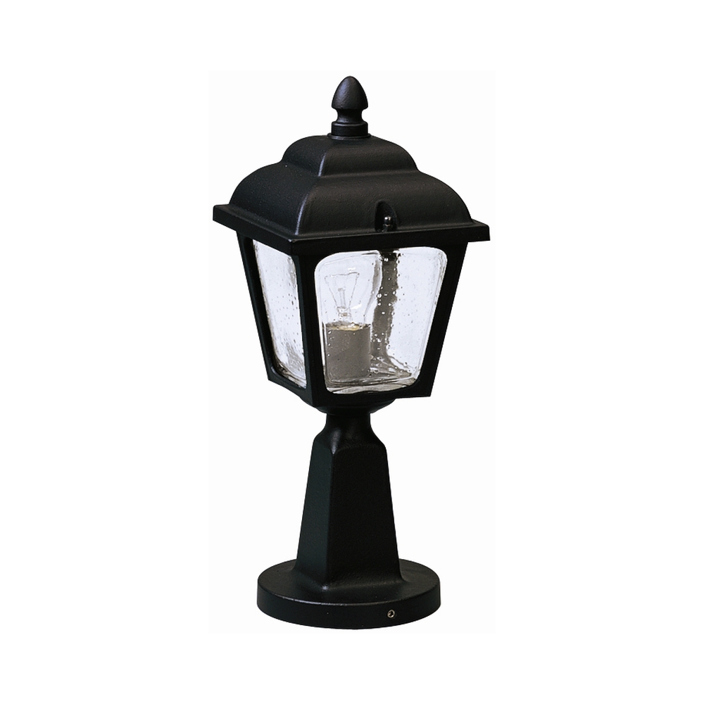 Sockelleuchte Landhausstil Doppelkuppel eckig, Typ Nr. 0536, Höhe 44cm, IP44, E27, Alu-Guss / Hohlglas klar, Schwarz matt