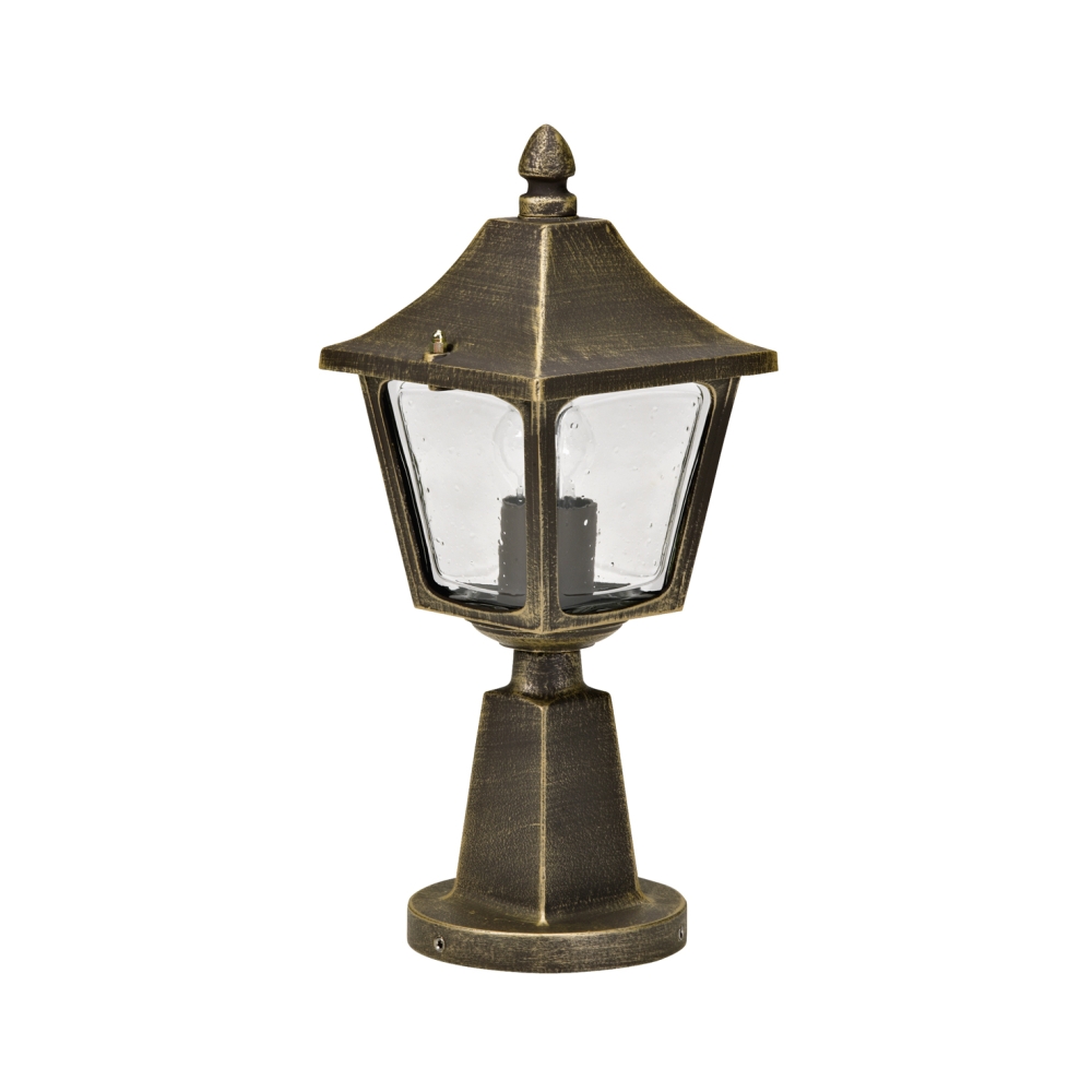 Sockelleuchte Landhausstil eckig Typ Nr. 0540, Höhe 45cm, IP44, E27, Alu-Guss / Hohlglas klar, Braun-Messing matt