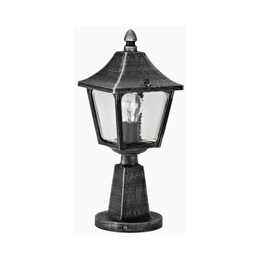 Sockelleuchte Landhausstil eckig Typ Nr. 0540, Höhe 45cm, IP44, E27, Alu-Guss / Hohlglas klar, Schwarz