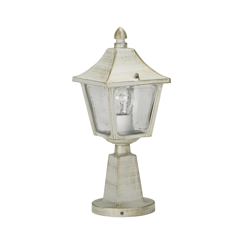 Sockelleuchte Landhausstil eckig Typ Nr. 0540, Höhe 45cm, IP44, E27, Alu-Guss / Hohlglas klar, Weiß-Gold