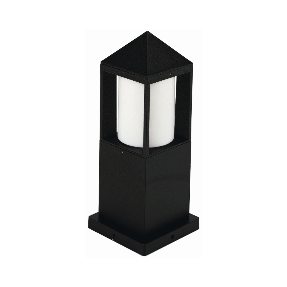 Sockelleuchte Typ Nr. 0556, IP44, Höhe 38cm, E27 QA55 max. 57W, Alu-Guss / Opalglas-Zylinder, Schwarz matt