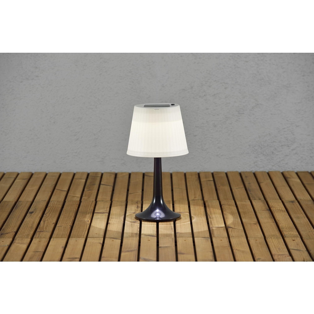 Solar HighPower LED table luminaire ASSISI, IP44, 0.5W 4500K, black plastic base / satined shade