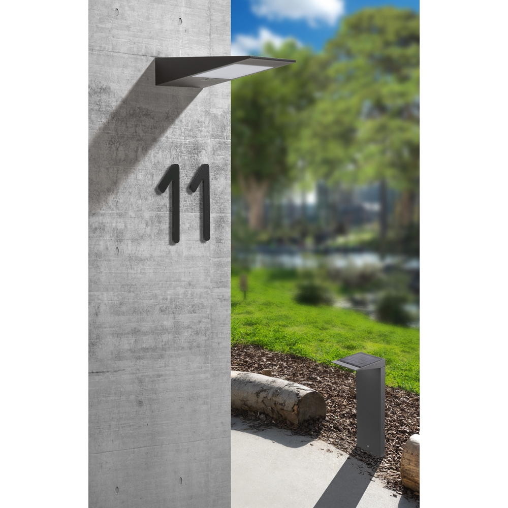 The LED solar wall light from CMD impresses with its elegant, angular design in anthracite. Made from robust aluminum and high-quality opal glass, it convinces with durability and a refined appearance. With compact dimensions of 14 x 4.6 x 19 cm, the light blends harmoniously into any environment and provides pleasant illumination. The wall light is designed for surface mounting and is easily installed using a clamp connection.