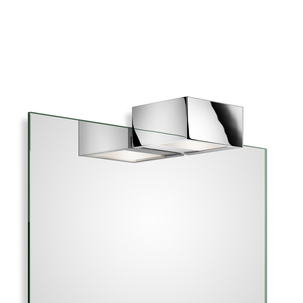 Die Spiegelleuchte BOX 1-10 besteht aus hochwertigem Acrylglas und Messing in der Farbe Chrom. Das eckige Design fügt sich perfekt in moderne Möbel ein und sorgt für eine stilvolle Beleuchtung in Ihrem Wohnraum.