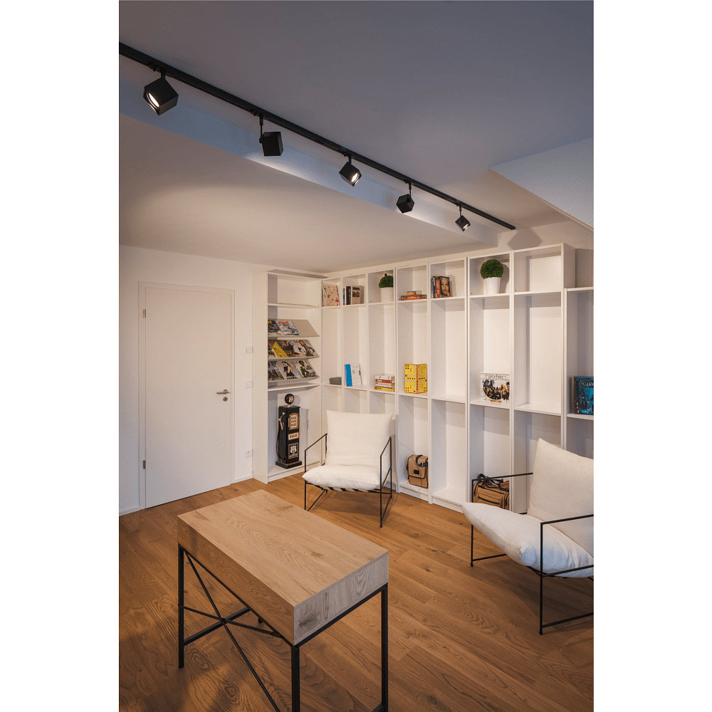 The ALTRA DICE spotlight allows for a particularly large range of tilt angles through a lateral joint on the light head. It is suitable for use with replaceable GU10 reflector lamps. When using halogen light sources, a mounting height of over 250cm is recommended.