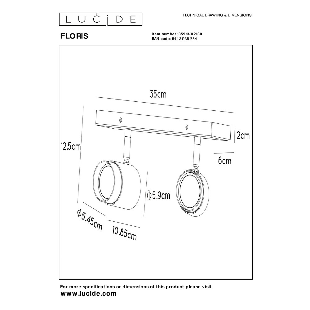The FLORIS ceiling spotlight with 2 GU10 bulbs is a stylish and practical lighting element for your home. With an operating voltage of 230V, this spotlight provides bright and pleasant light in your indoor space.