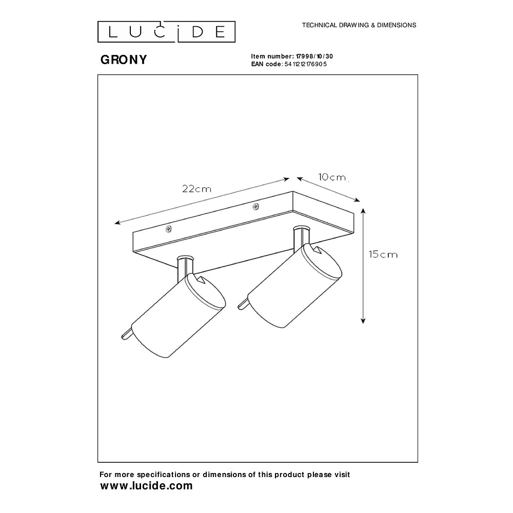 The LED Ceiling Spotlight GRONY is a stylish and modern ceiling spot, which is operated with two GU10 bulbs. With a total power consumption of 10W and a luminous flux of 640lm, it provides pleasant lighting in your space.