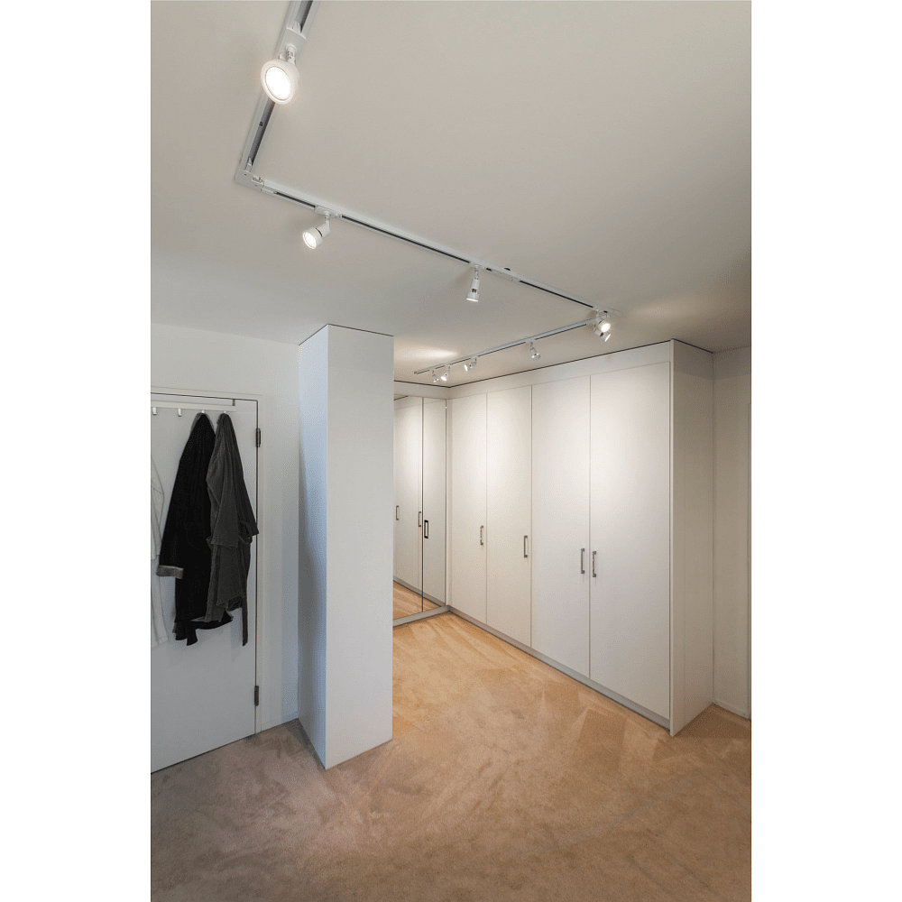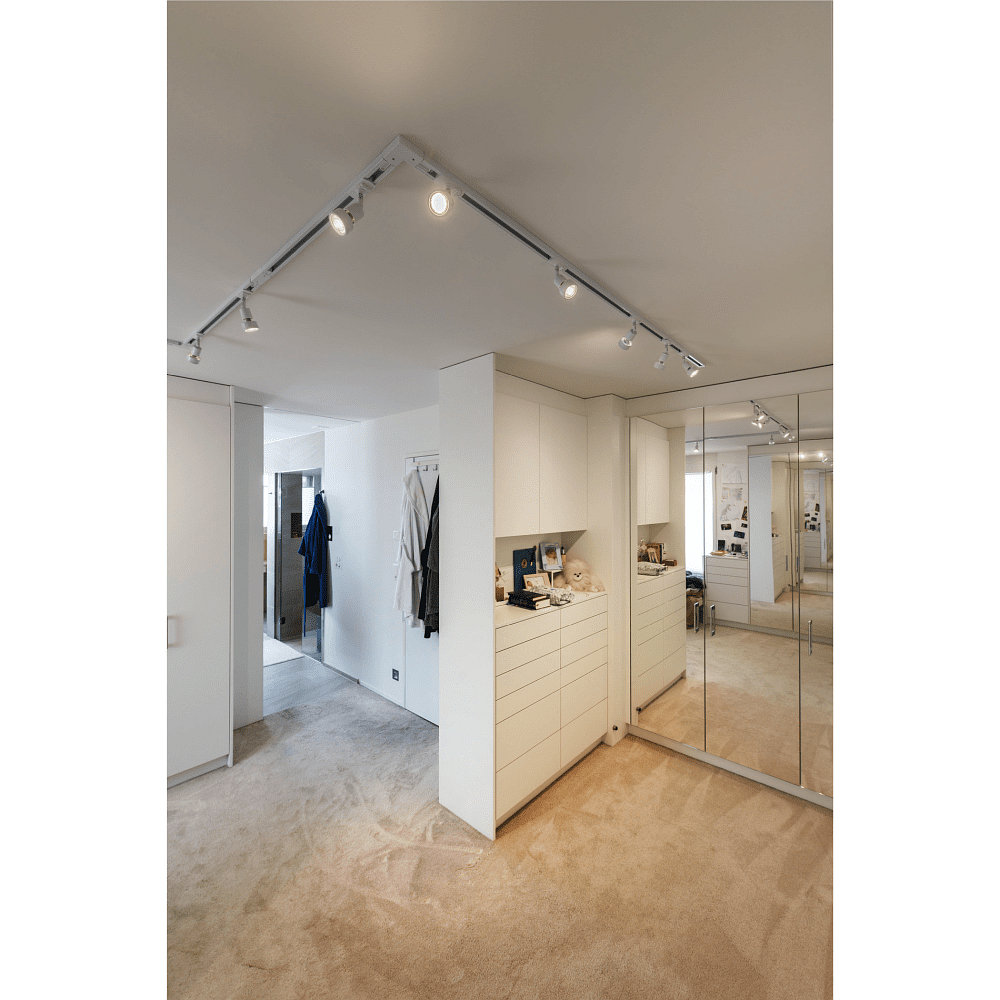 The 1-Phase Spotlight PURI TRACK is a versatile and puristically designed track spotlight, ideal for home use, shops, gastronomy, and other scenarios. With its elegant design, it seamlessly blends into different environments and skillfully showcases your spaces.