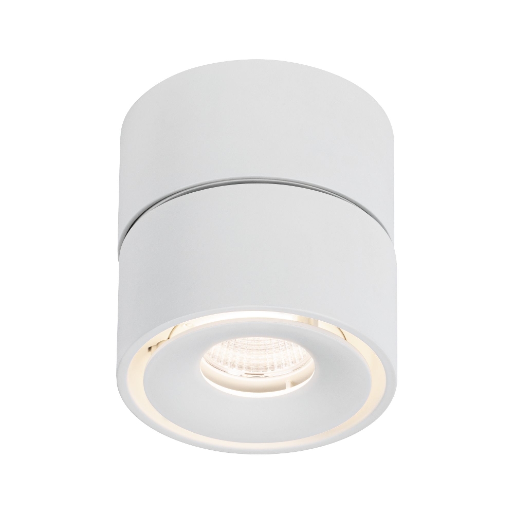 The LED surface-mounted object light SPIRCLE has a modern design with a diameter of 7.8 cm and a height of 8.3 cm. It is made of matte white aluminum and seamlessly integrates into any living situation with its industrial look. The installation is done as surface mounting on the ceiling.