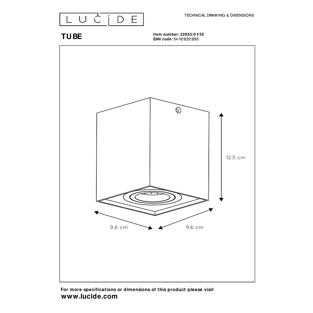 The ceiling spotlight TUBE is a modern and simple lighting element for your living spaces. With dimensions of 9.6 x 9.6 x 12.5 cm, this square spotlight harmoniously blends into any room concept and provides targeted lighting.