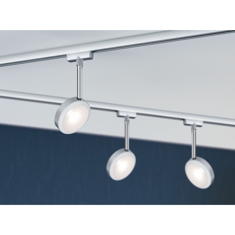 The 1-Phase LED Track Spotlight URAIL DISCUS by Paulmann impresses with its high-quality construction, energy-efficient LED technology, and dimmable function. With its modern design and flexible application possibilities, it is the ideal lighting solution for indoor spaces.