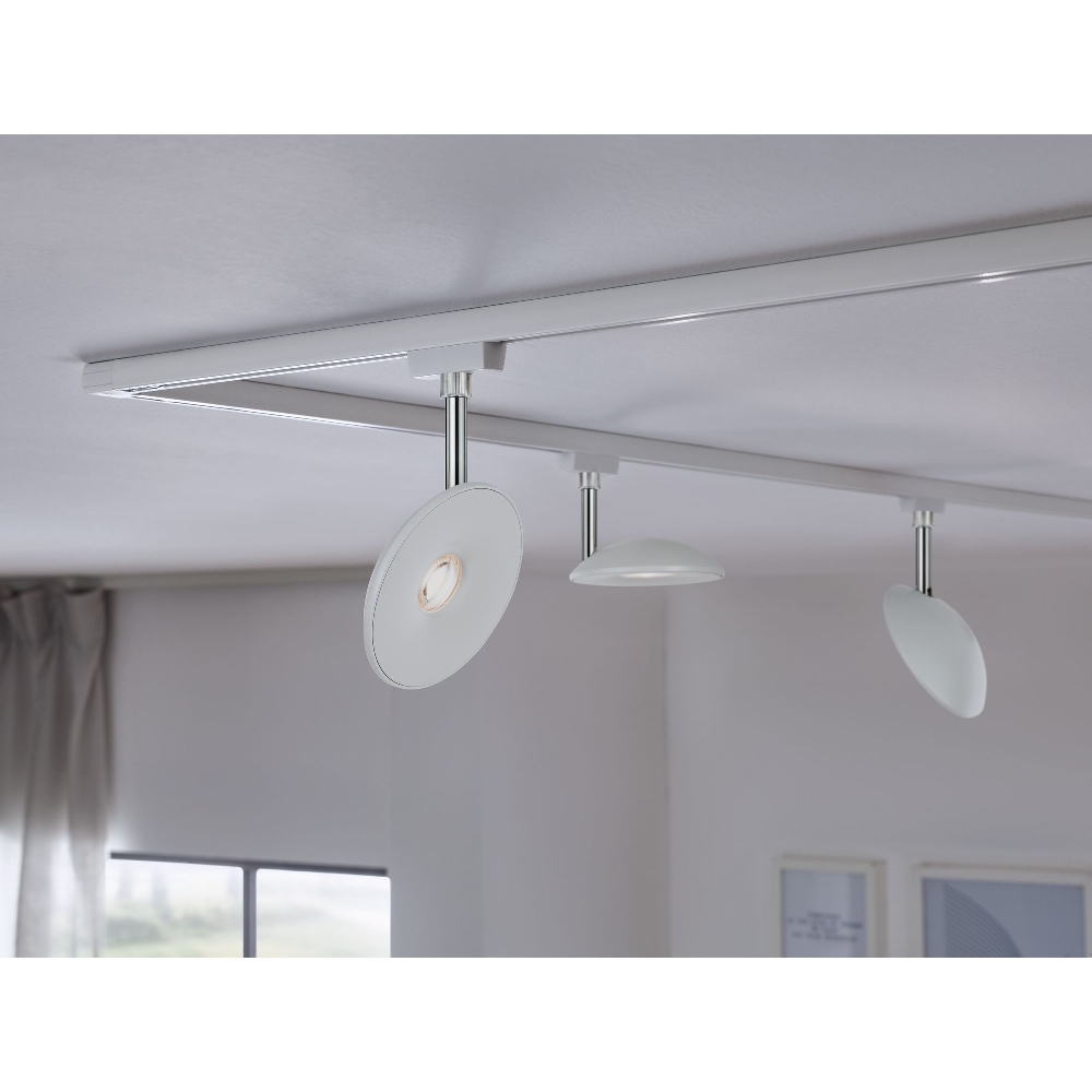 The track spotlight impresses with its elegant design in chrome and white colors. The round shape and plastic material give it a modern and timeless look. With dimensions of 11.98 x 18.3 x 3.2 cm and a weight of 256g, the spotlight can be easily mounted on ceilings or walls.