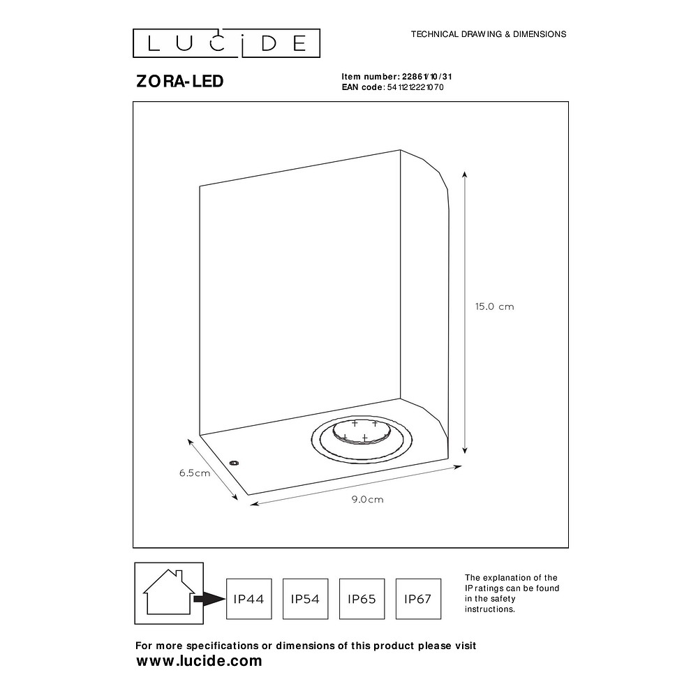 The ZORA wall spotlight is stable and durable thanks to its aluminum construction. It can be operated with replaceable GU10 reflector lamps (PAR51 / PAR16) and offers the possibility for individual adjustment of the light.