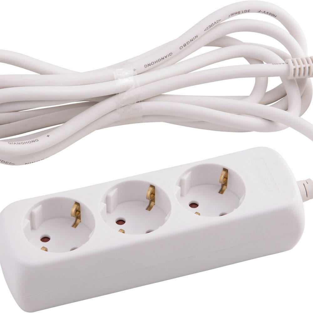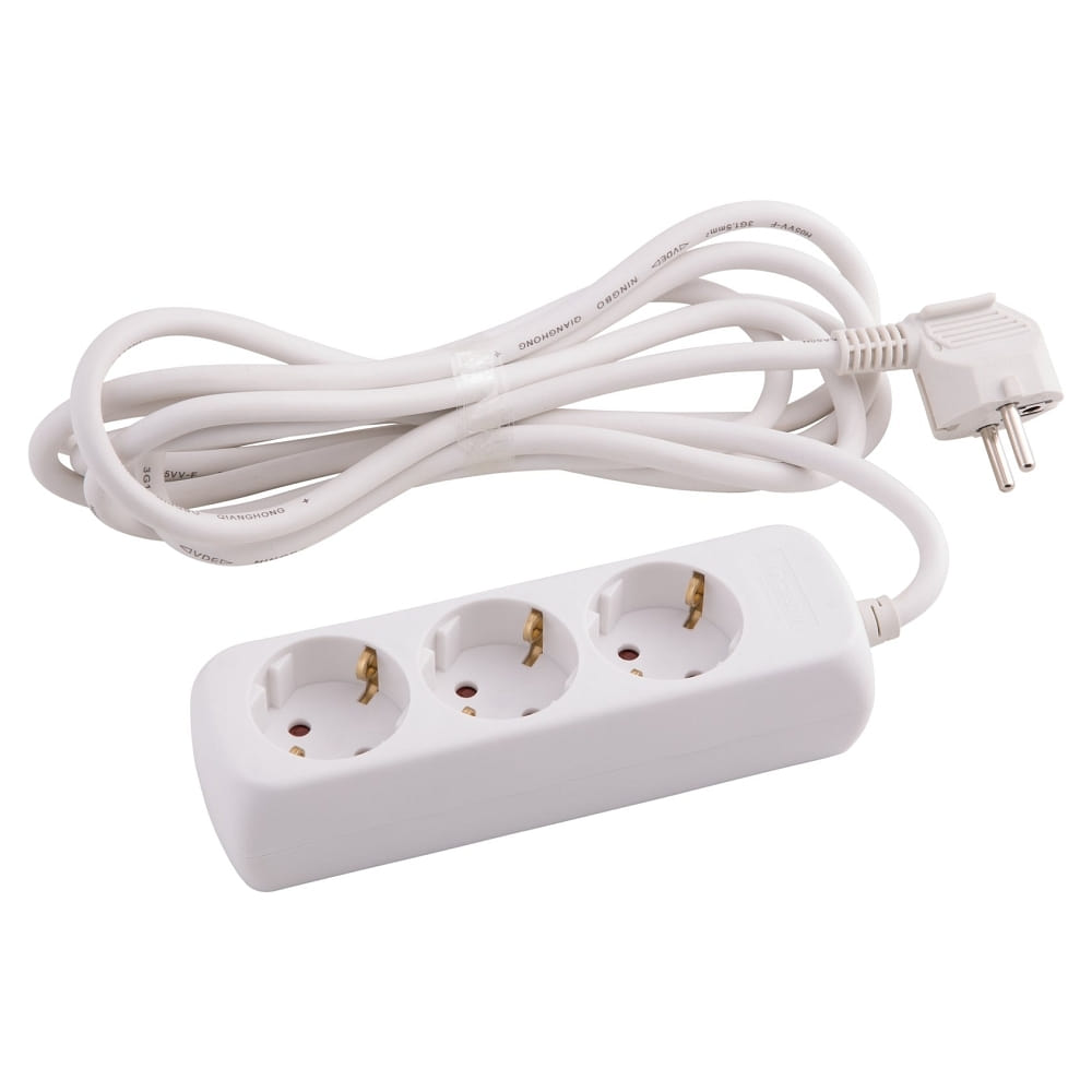 Steckdosenleiste, 3-fach, 3G 1.5mm², weiß, geeignet für DE / FR /B, mit 300cm Anschlusskabel
