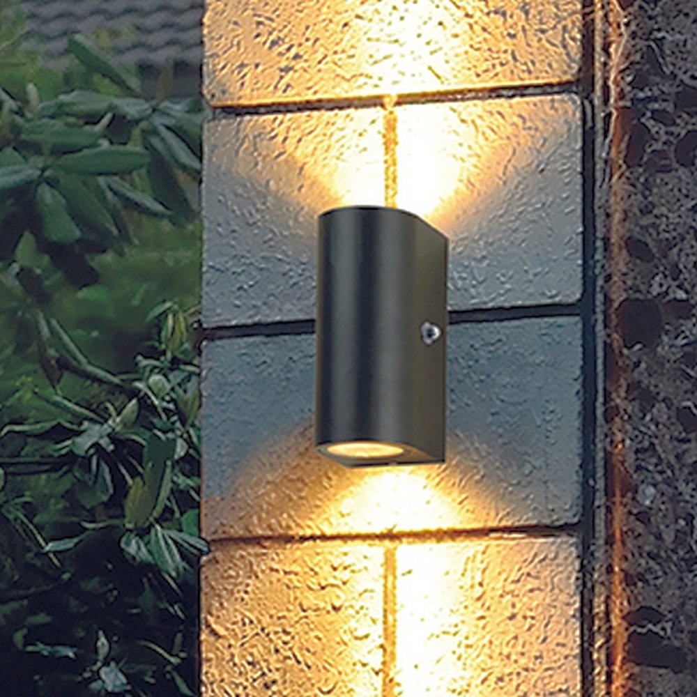 The outdoor wall light comes with 2x GU10 LED bulbs, each offering 4W power and an extra warm white light color. With a total luminous flux of 690lm, the LEDs provide bright and uniform illumination. The bulbs have a lifespan of up to 25,000 hours and can be replaced if needed.