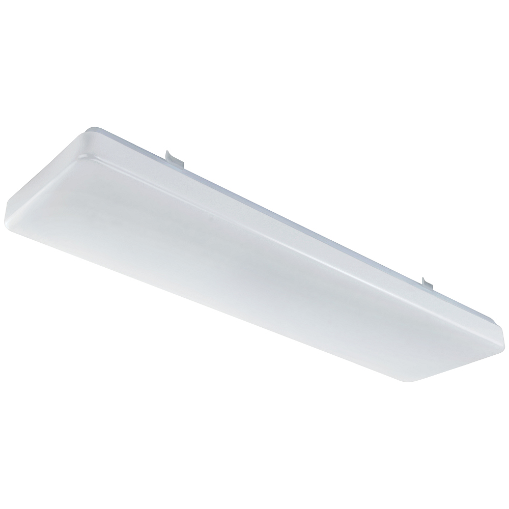 The housing of the surface-mounted light is designed in simple white and measures 60 cm in length, 16 cm in width, and 5 cm in height. Weighing only 0.82 kg, it is easy to handle. The fixture is rated IP20 and IP44, offering reliable protection against dust and splashing water. The included mounting accessories allow for straightforward installation.