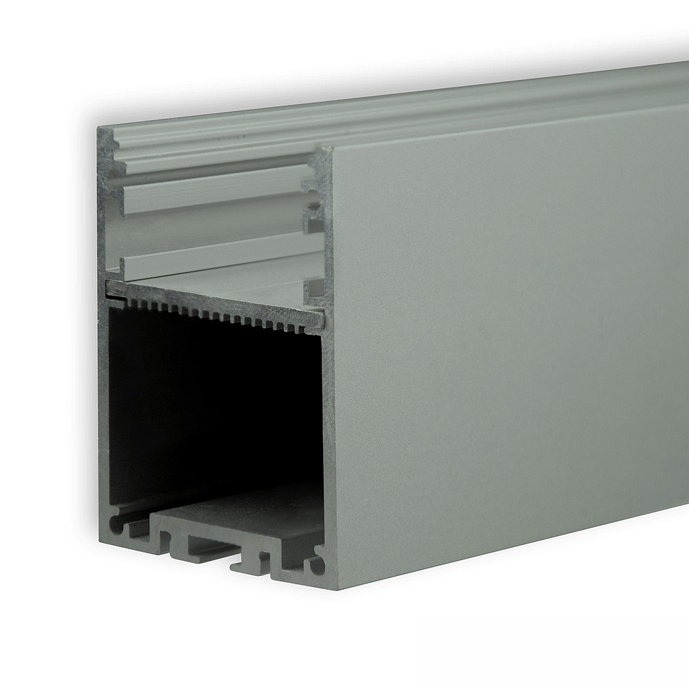 The square surface-mounted profile has a recess height of 2.42 cm and an inner width/height of 3.6/1.65 cm. The LED strip with a width of 3.06 cm fits perfectly into the profile and ensures even illumination. The silver color and high-quality aluminum material make the profile an elegant and durable product.