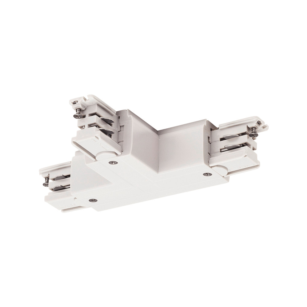 T-Connector for S-TRACK 3-Phase high-voltage track, Earth right, traffic white RAL 9016