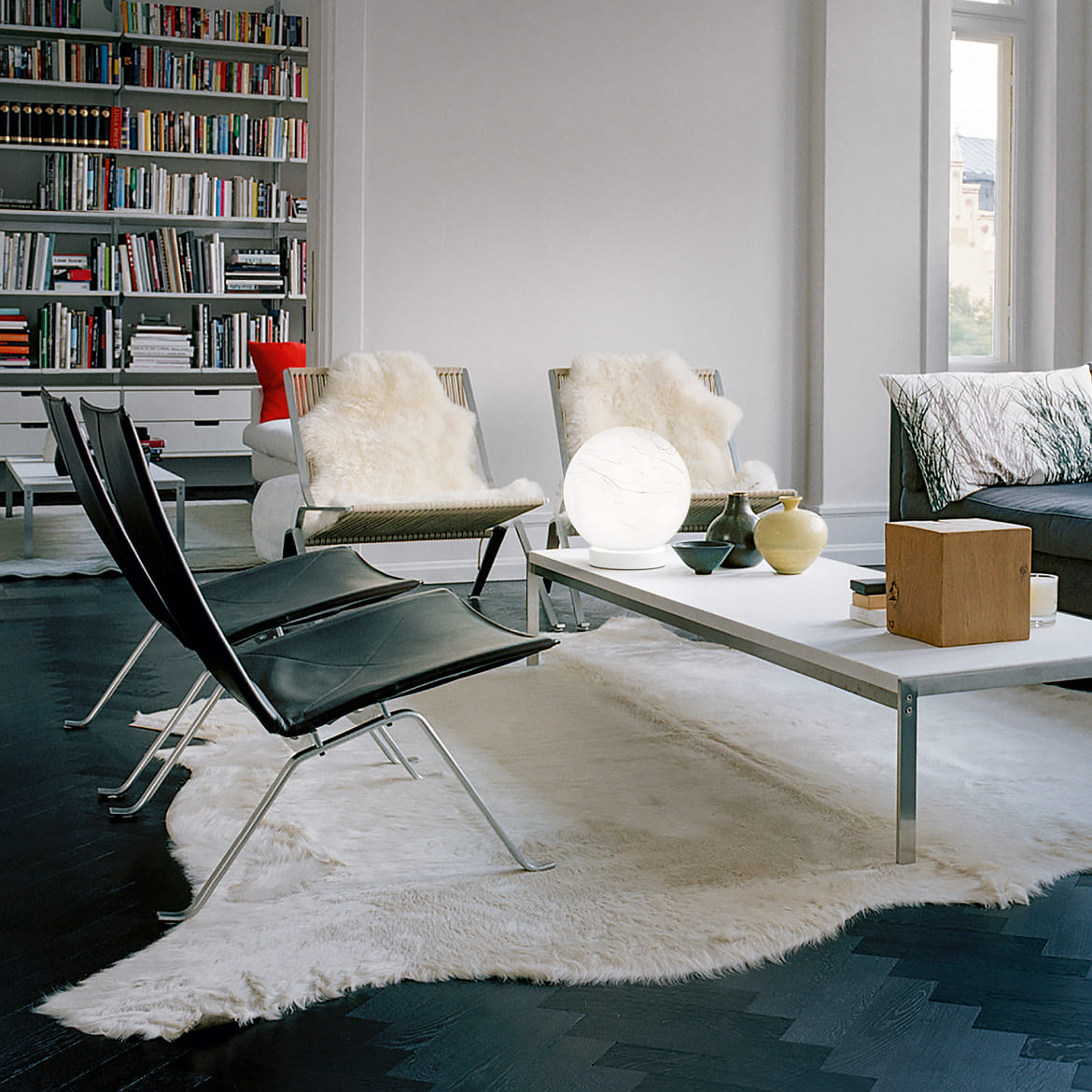 The table lamp is made of metal and polycarbonate (PC), making it particularly sturdy and durable. The frame is matt white lacquered and the light diffuser has a paper effect coating. The connection cable is 150 cm long and has a convenient on/off switch.