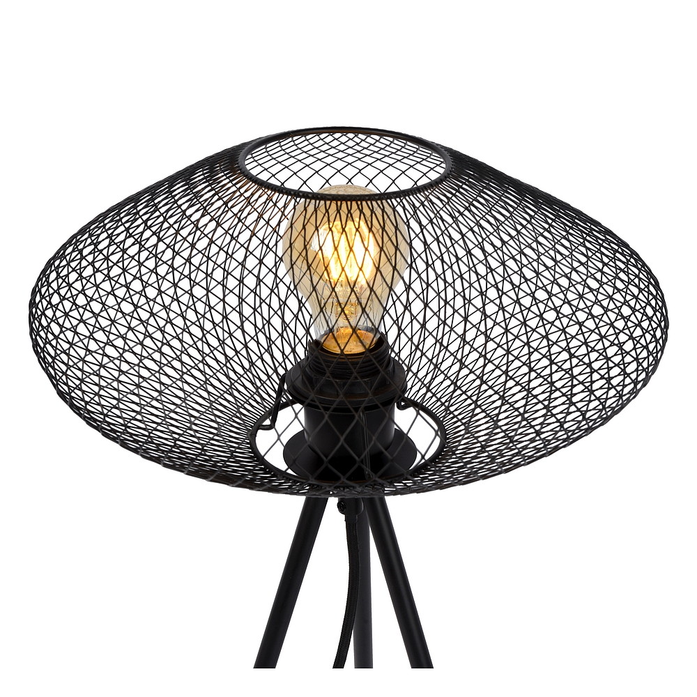 The table lamp MESH is a stylish lighting element with a diameter of 30 cm. It has an E27 socket and does not come with a light bulb. The design, made of metal and textile in black color, makes it an elegant accessory for any room.