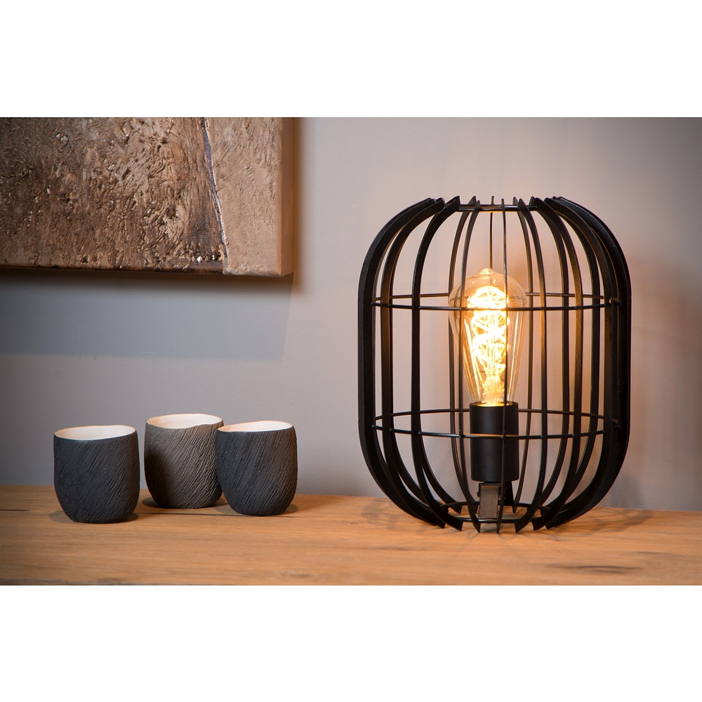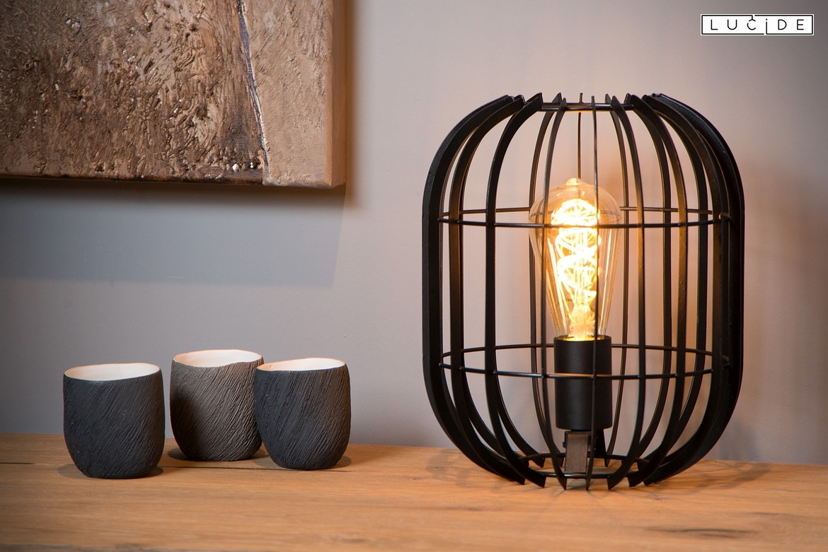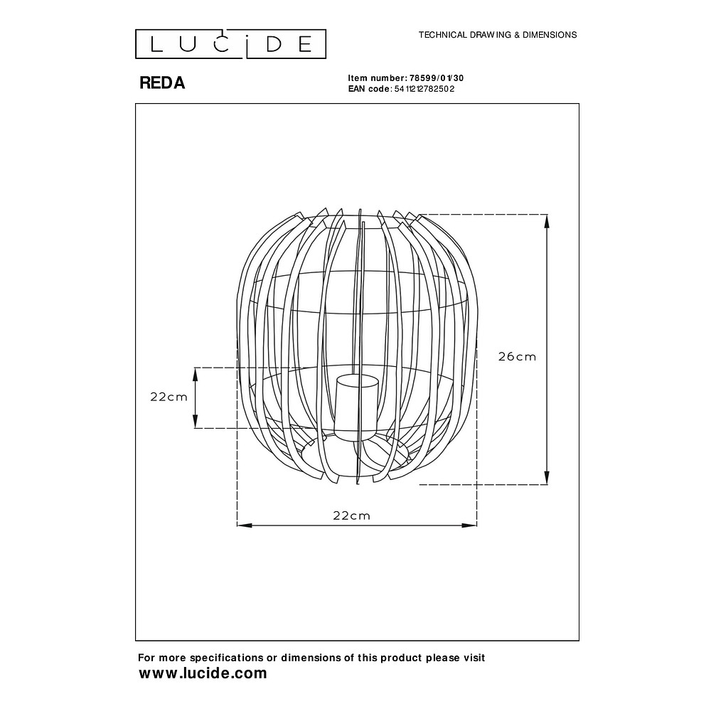 The table lamp REDA comes with an on/off switch and has a connection cable with a length of 130 cm. The size of the lamp is 22 x 22 x 26 cm. The bulb is not included and the lamp is not dimmable. It is perfect for use on a table indoors.