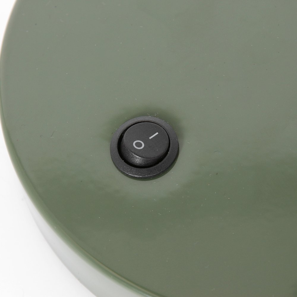 The table lamp SPRING is made of high-quality metal and is in an attractive green color. The fixture should be mounted only on non-flammable surfaces to ensure safety.