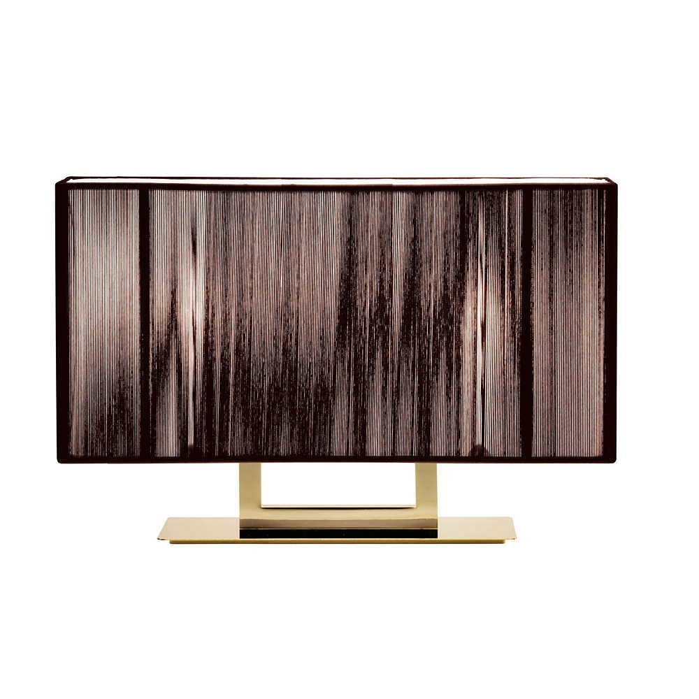 The table lamp has a size of 40 x 32 x 12 cm (width x height x depth) and weighs 4 kg. It has a square shape and is available in the colors gold and tobacco. The design of the lamp is modern and complements various styles of decor.
